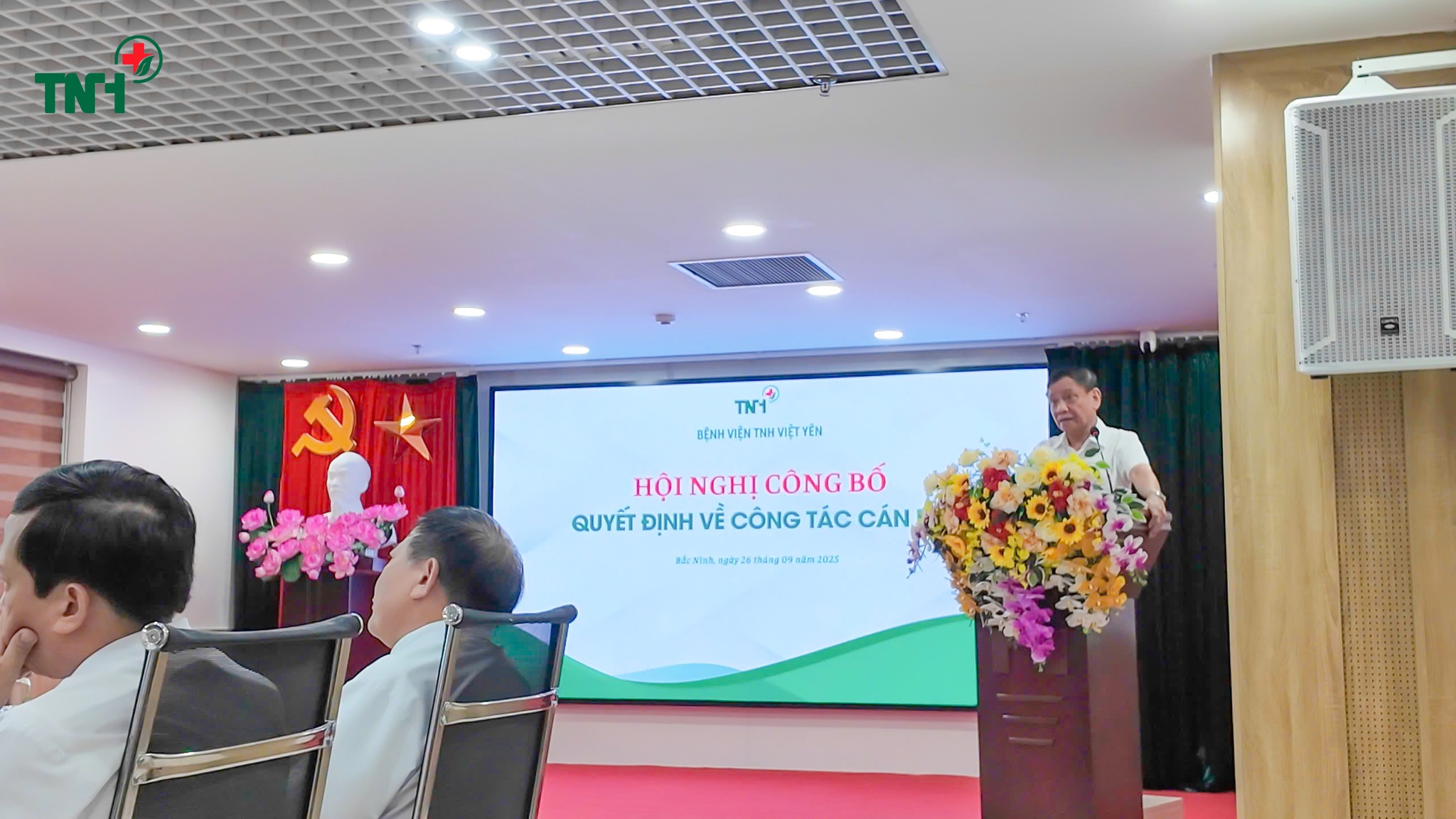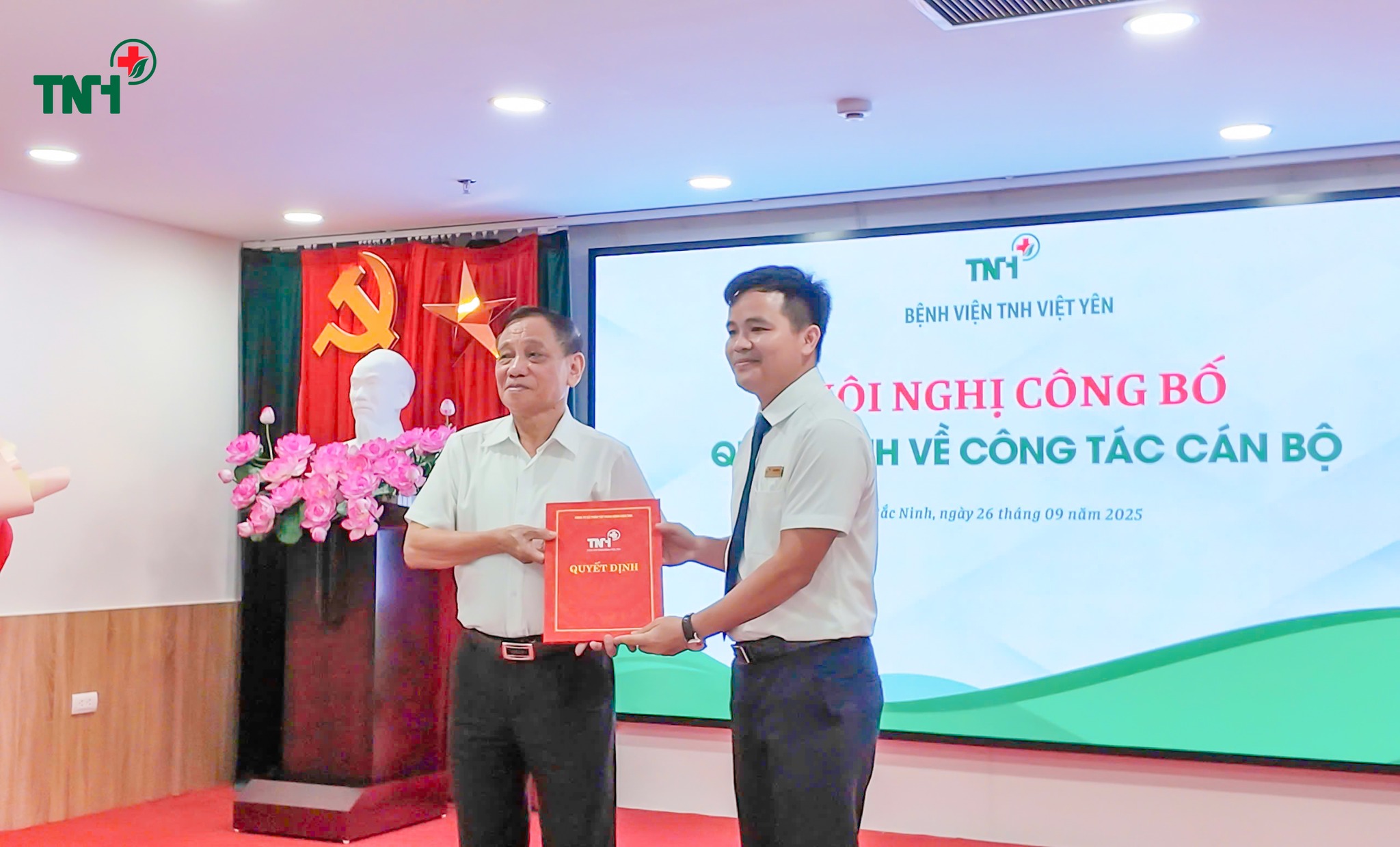 Sáng ngày 26/09/2025, tại Bệnh viện TNH Việt Yên, CTCP Tập đoàn Bệnh viện TNH đã long trọng tổ chức Hội nghị Công bố Quyết định về công tác cán bộ. Sự kiện này mang ý nghĩa quan trọng, thể hiện sự quan tâm sâu sắc của Ban Điều hành trong việc kiện toàn bộ máy quản lý, điều hành, đồng thời là bước đi thiết thực nhằm hiện thực hóa tầm nhìn chiến lược đưa TNH trở thành hệ thống y tế hiện đại, nhân văn và uy tín hàng đầu cả nước.